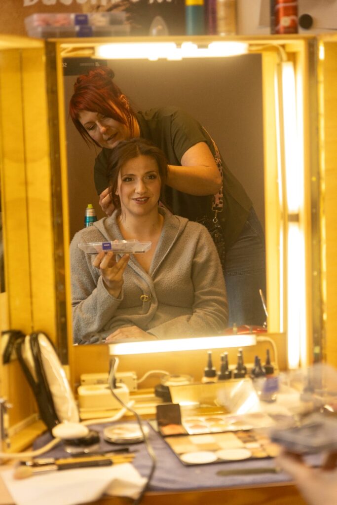 Ein Brautstyling gehört zu meinen liebsten Aufgaben. Es erinnert mich an meine Zeit im Friedrichstadt-Palast – mit der gleichen Mischung aus Vorfreude, Adrenalin und präzisem Handwerk. Jeder Handgriff muss sitzen, jedes Detail stimmen.